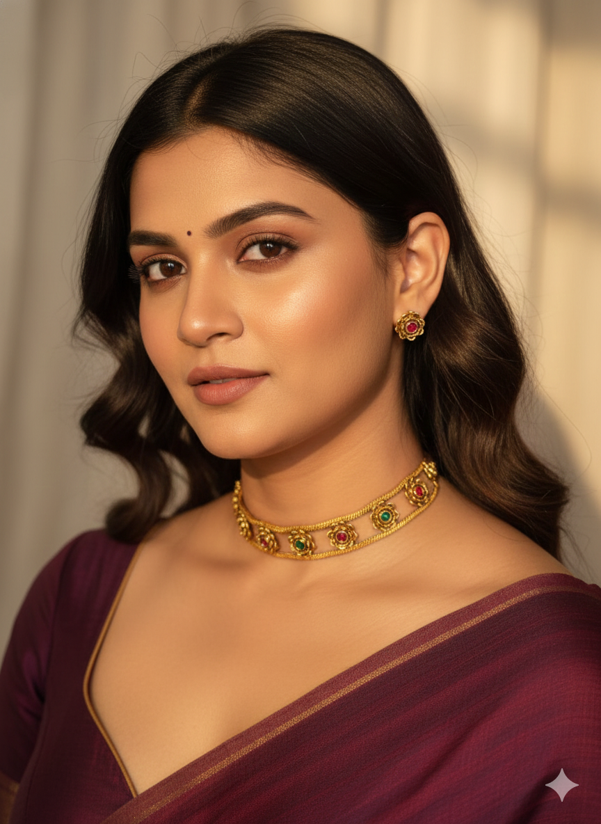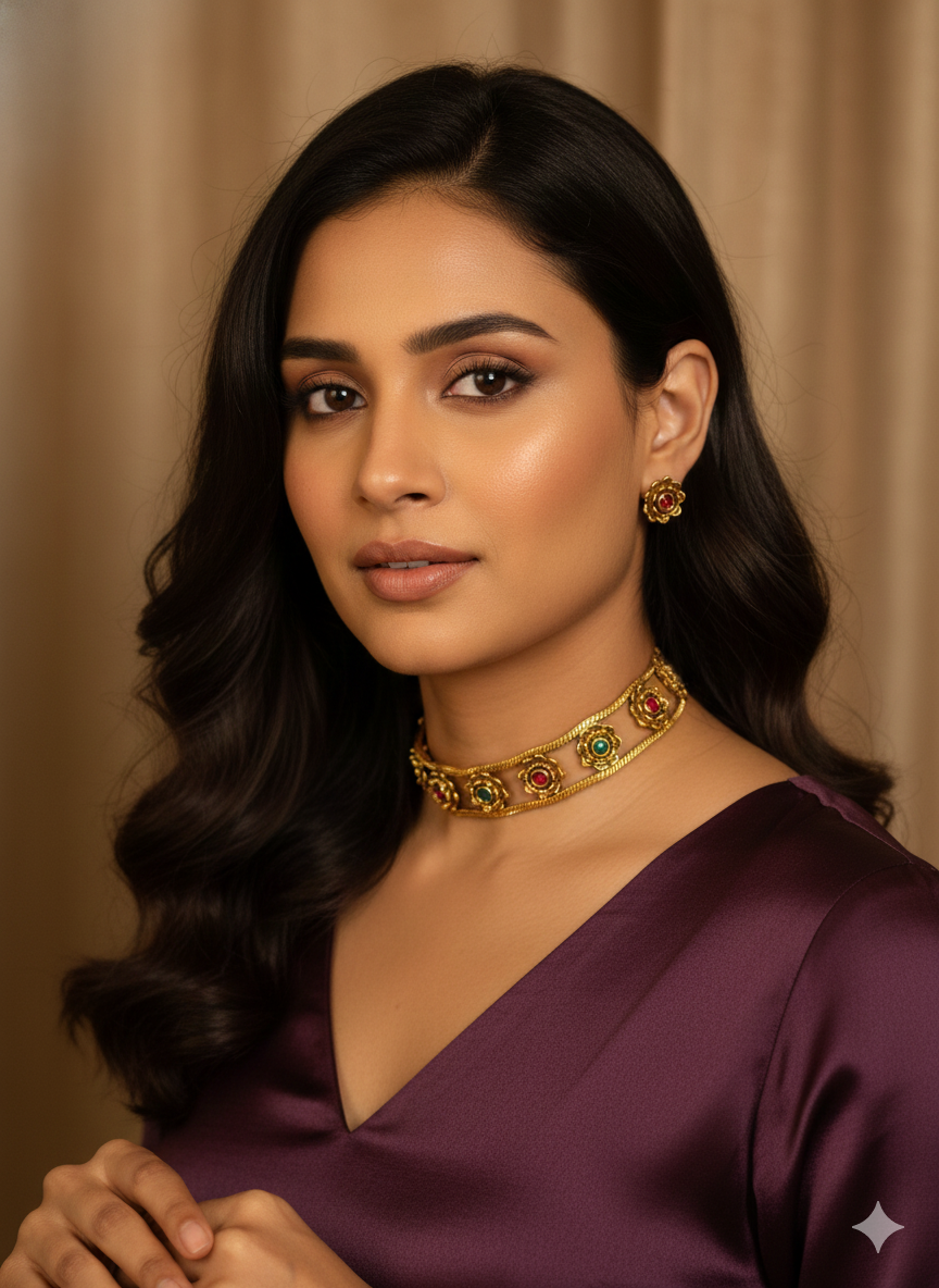 Elevate your neckline with this sophisticated floral choker set, designed for those who appreciate refined accessories. Featuring delicate floral motifs with expert craftsmanship. The choker's snug fit creates a flattering silhouette while the floral detailing adds an elegant touch to any ensemble.